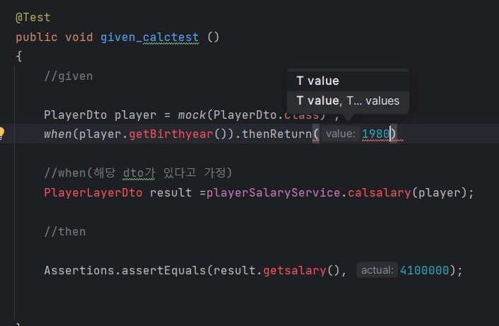 그 player의 get birthyear가 호출되면, 1980이라는 값을 return하게 조정한 것.