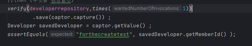 mock을 통해 가짜로 생성되었기 떄문에, 이때 내가 만든 developer가 생성되어 들어간다 .