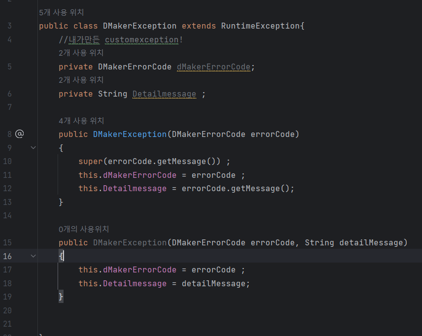 해당 예시. 물론, DMakerException을 객체로 따로 만들어주어 이를 준비해야한다.
