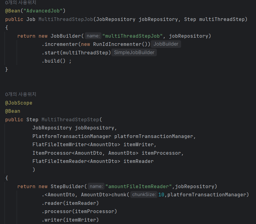 write,read,process는 모두 step에, 해당 step들은 job에 들어가게 된다 .