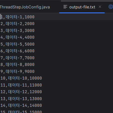 amountdto를 일겅오며, 그 이름을 지정했다. setmapper는 위에서 설정한대로, 각 라인의 분할은 linetokenizer로 분할하였다.