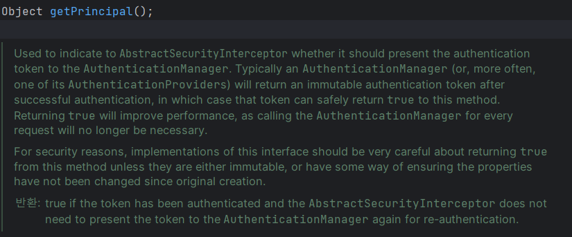 User->authentication 객체로 변환하여, 해당 객체가 인증받은 객체인지 아닌지를 get Principal로 확인해 줄 수 있다.
