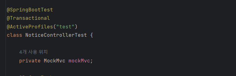 실제 예시를 , NoticeControllerTest를 통해 완성해 보겠다.