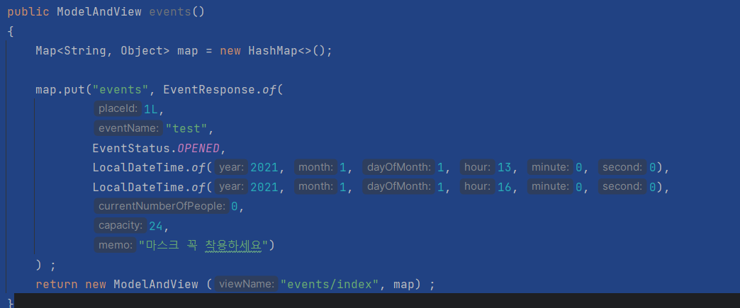 앞서 작성했던 대로, return 할 model의 key가 events였기 때문.