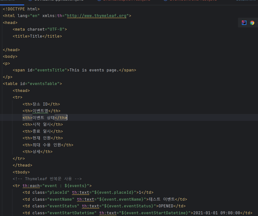 <#List events as event> 이후 ${event.eventId}와 같이 사용한다.